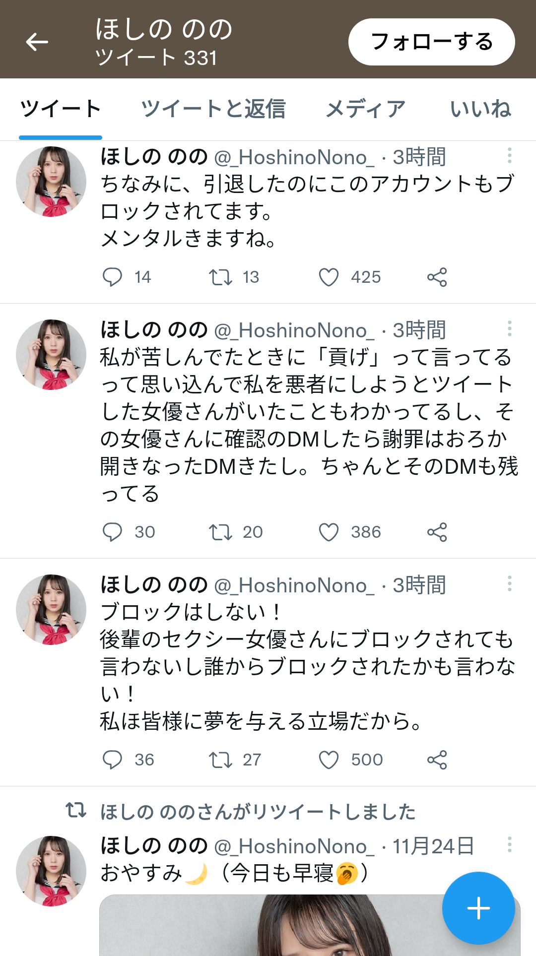 後輩の女優にブロックされたり