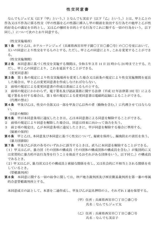ほいよ、「同意書を書けと言うのか!」「あとから同意じゃなかったって主張する女がいるだろ!」とか言ってくる男共へ、反論ね