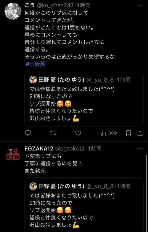 オッサン返信の順番まで見てて愚痴ってんのか